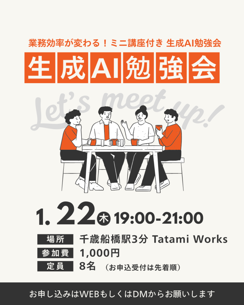 1/22 19:00~ 業務効率が変わる!店長のミニ講座付き 生成AI勉強会